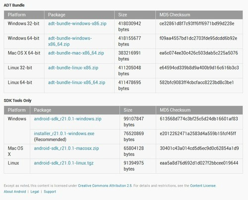 Download the SDK를 바로 누르시면 adt-bundle-windows-x86_64.zip파일을 바로 다운 다운 받으실 수 있습니다.