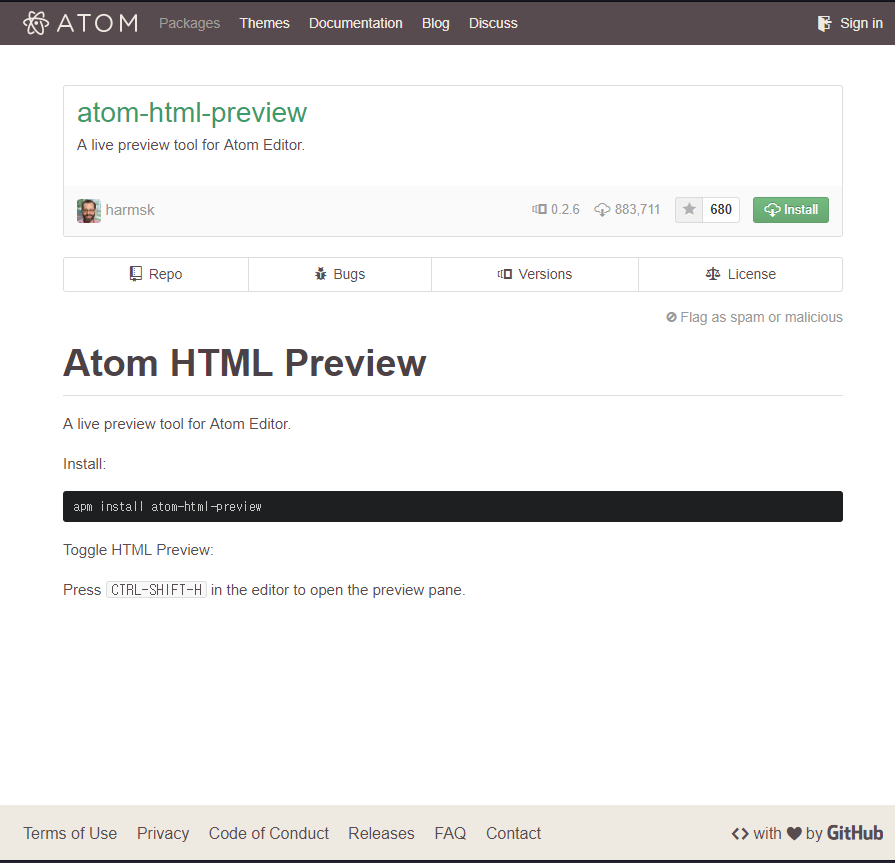 검색을 하니 atom-html-preview가 최상위에 올라와 있습니다.