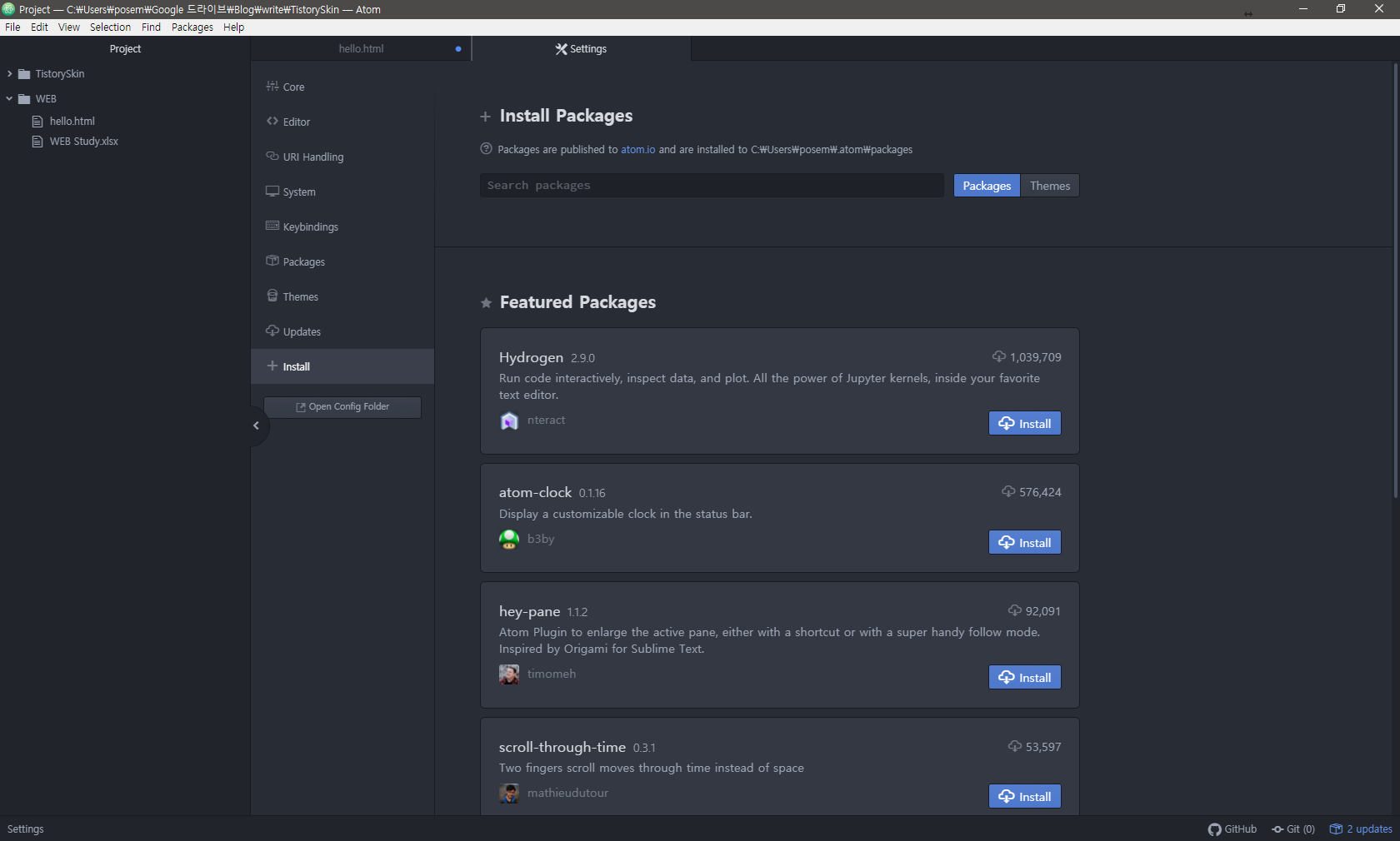 그래서 ATOM에 HTML Preview기능을 설치하기로 했습니다.