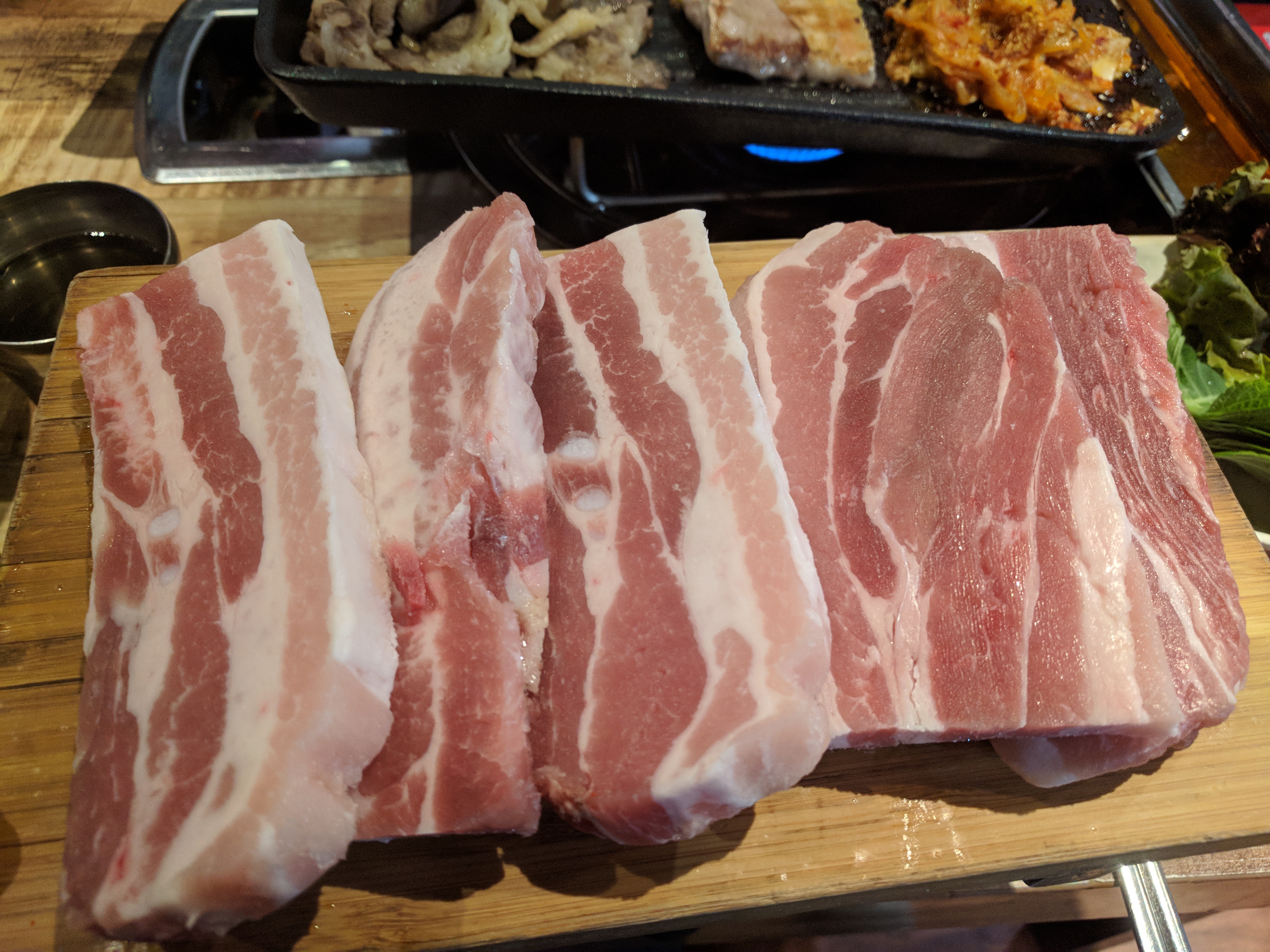 저희는 들어가서 삼겹살+초벌 목살+우삼겹+셀프바 5인을 주문했습니다.