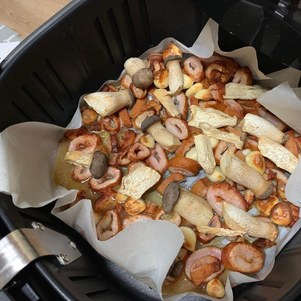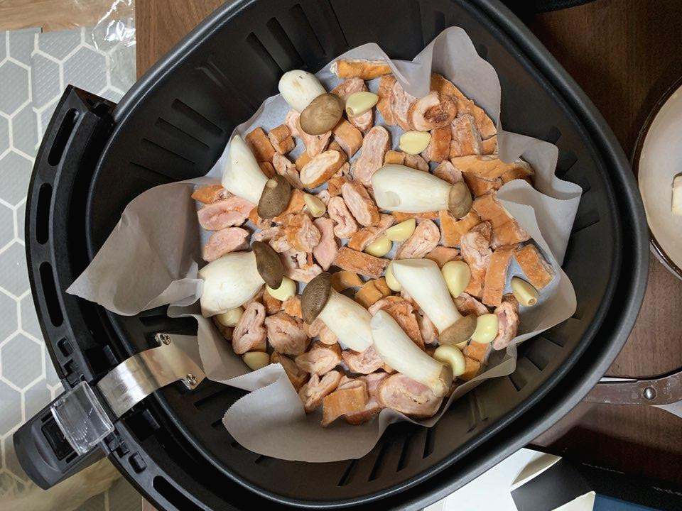 에어프라이어에는 종이호일을 깔지않고 기름을 아래로 빠지게 해주면 좀 더 빠르게 겉바속촉을 만들수 있더라고요! 저흰 잘 몰라서 종이호일을 깔고 했다가 기름이 많이 나와서 종이 호일을 빼고 한번더 구웠답니다..ㅠㅠ