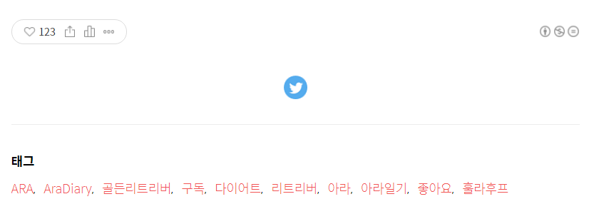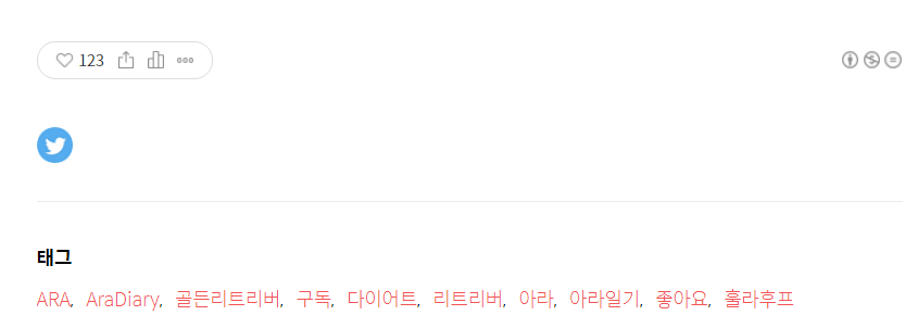 저는 제일 위에서 보여 드린 이미지처럼 본문과 태그 사이에 공유 버튼을 위치하겠습니다.