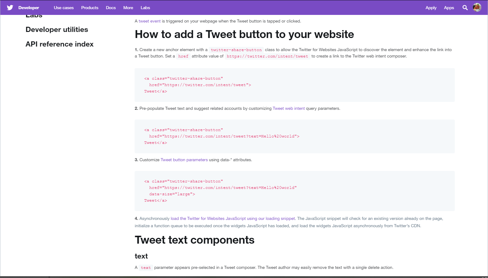 트위터 공유 버튼을 얻기 위해서 twitter developer에 방문을 하였습니다.