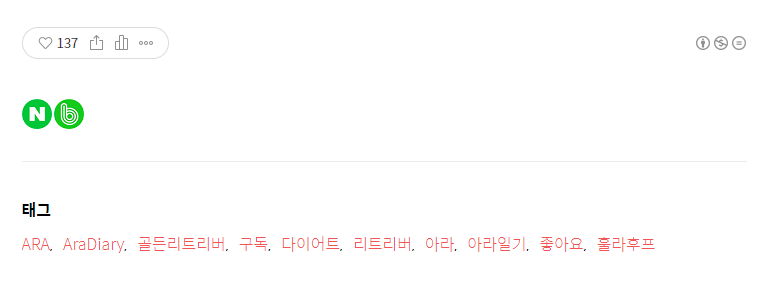 저는 제일 위에서 보여 드린 이미지처럼 본문과 태그 사이에 공유 버튼을 위치하겠습니다.