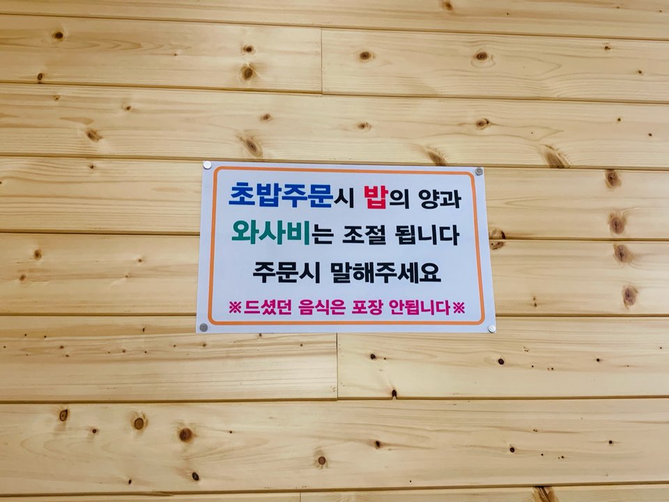 와사비는 조금 더 넣어서 코가 뻥 하는 느낌을 좋아라 해서 저 팻말이 무진장 마음에 들었어요. ㅎㅎㅎ