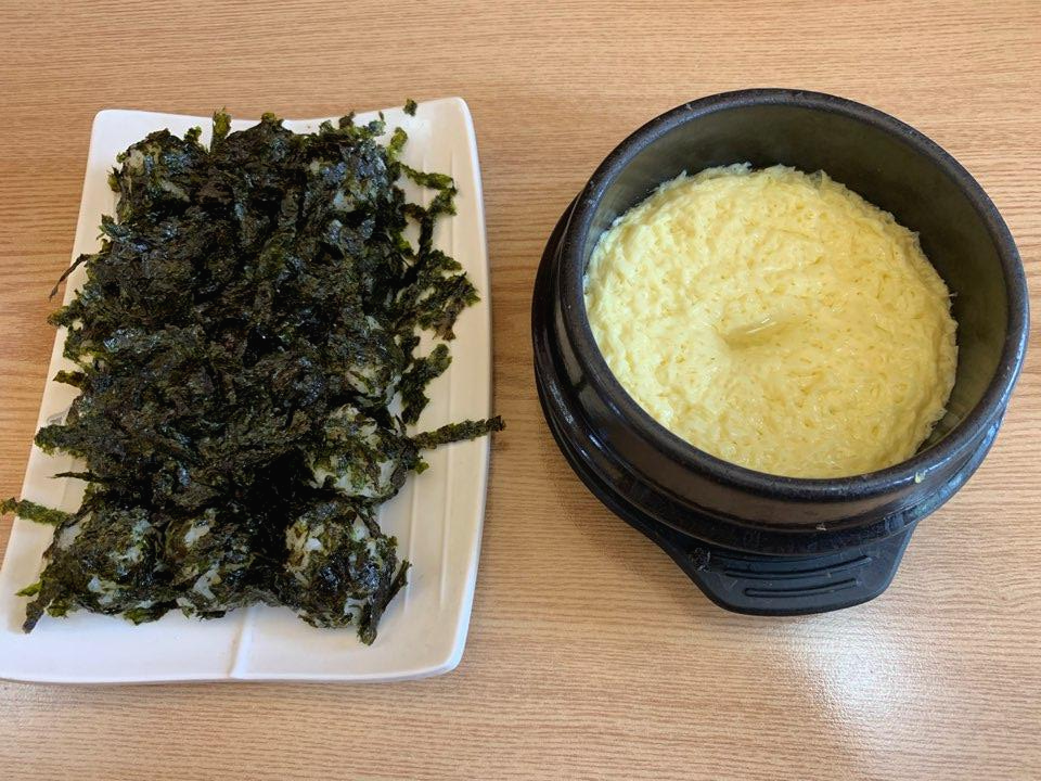 주먹밥과 계란찜이 먼저 나왔어요.
