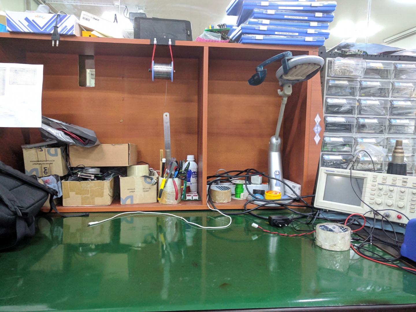 노트북 하나에 모니터 두 개를 연결했었고, 내가 개발했던 LED 모듈을 스탠드로 설치했다.