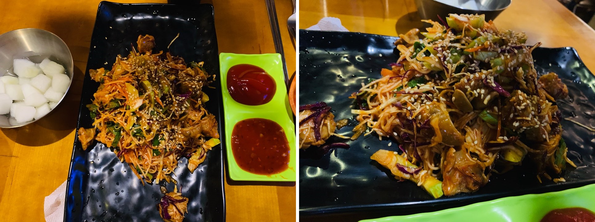 골뱅이 소면과 핫 양념치킨반, 허니갈릭치킨반을 시켰어요.
