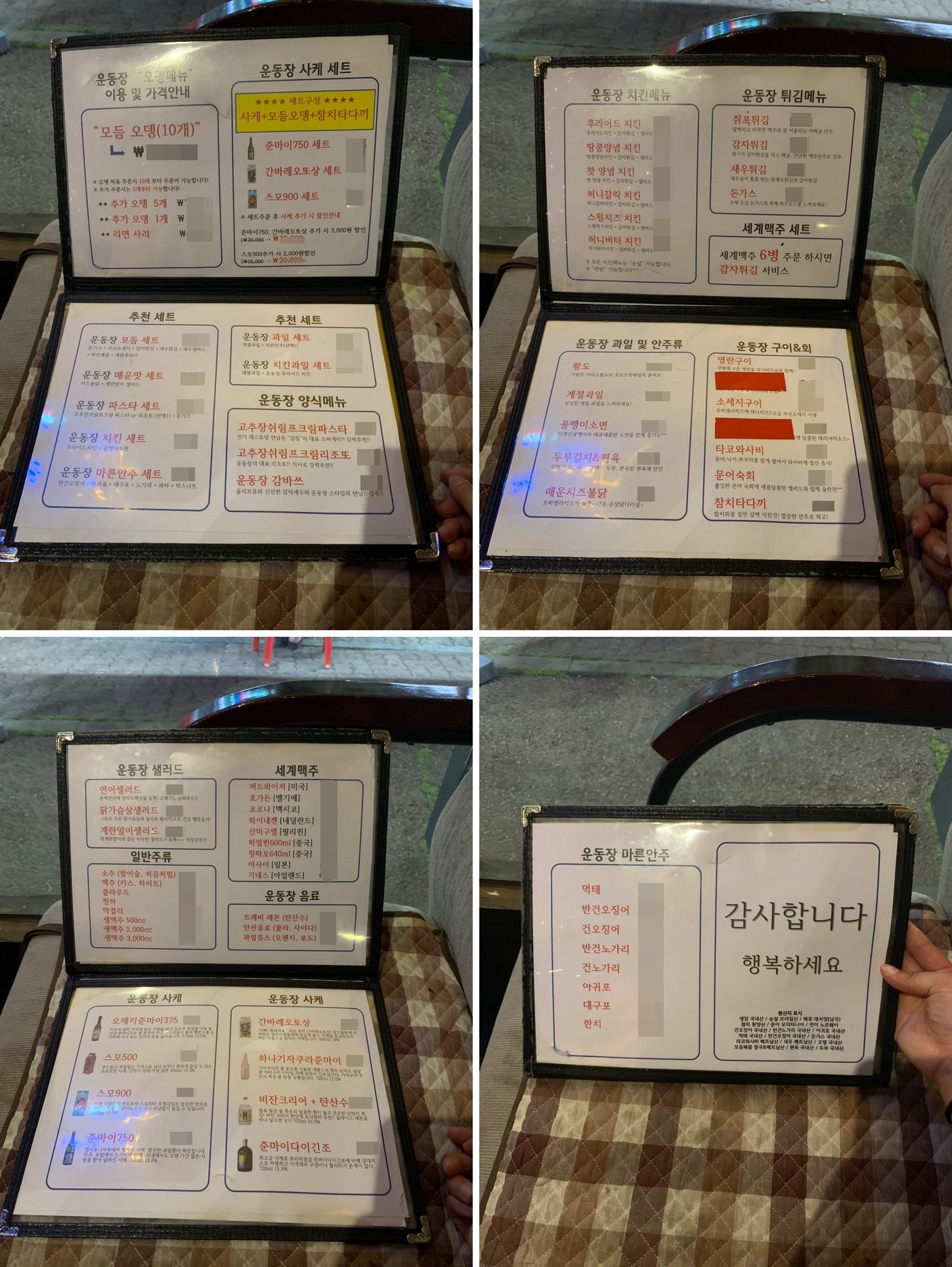우리는 자리에 앉아서 메뉴판을 봤어요.
