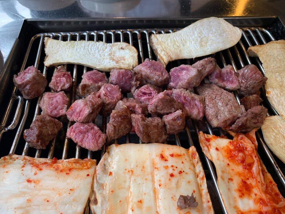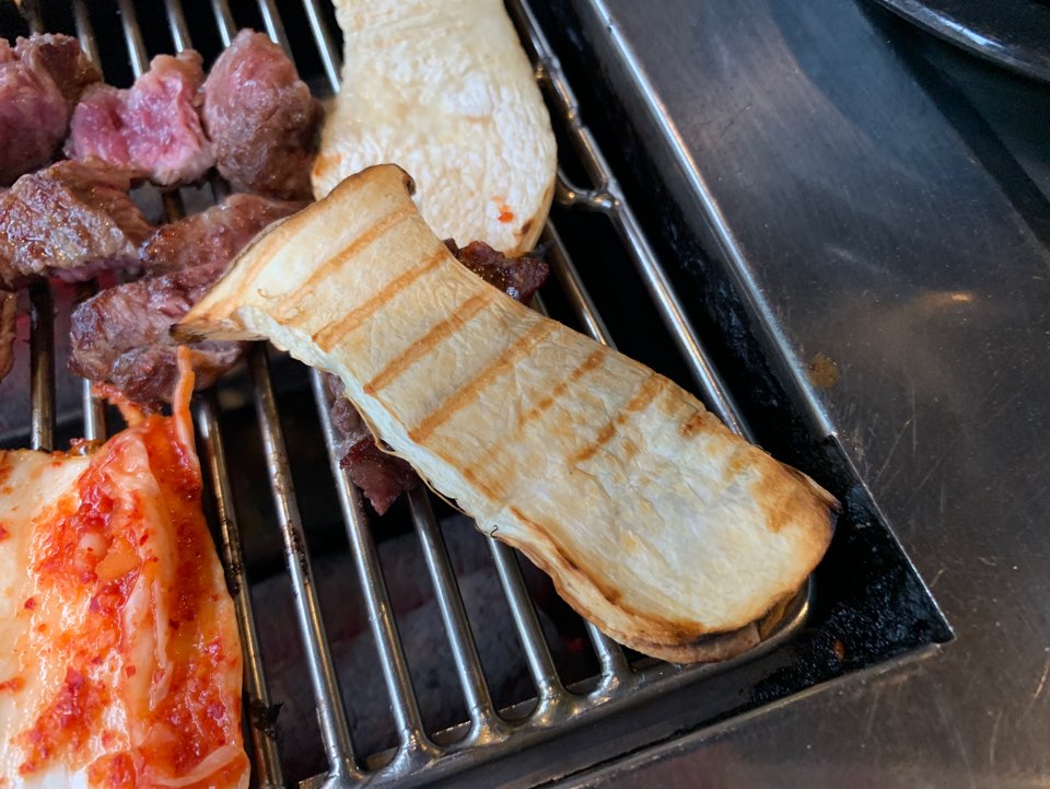 고기를 굽고 있는데 버섯도 뒤집다가 여친님이 그릴 자국을 보고 이건 찍어야지!! 하더라고요 ㅎㅎㅎ