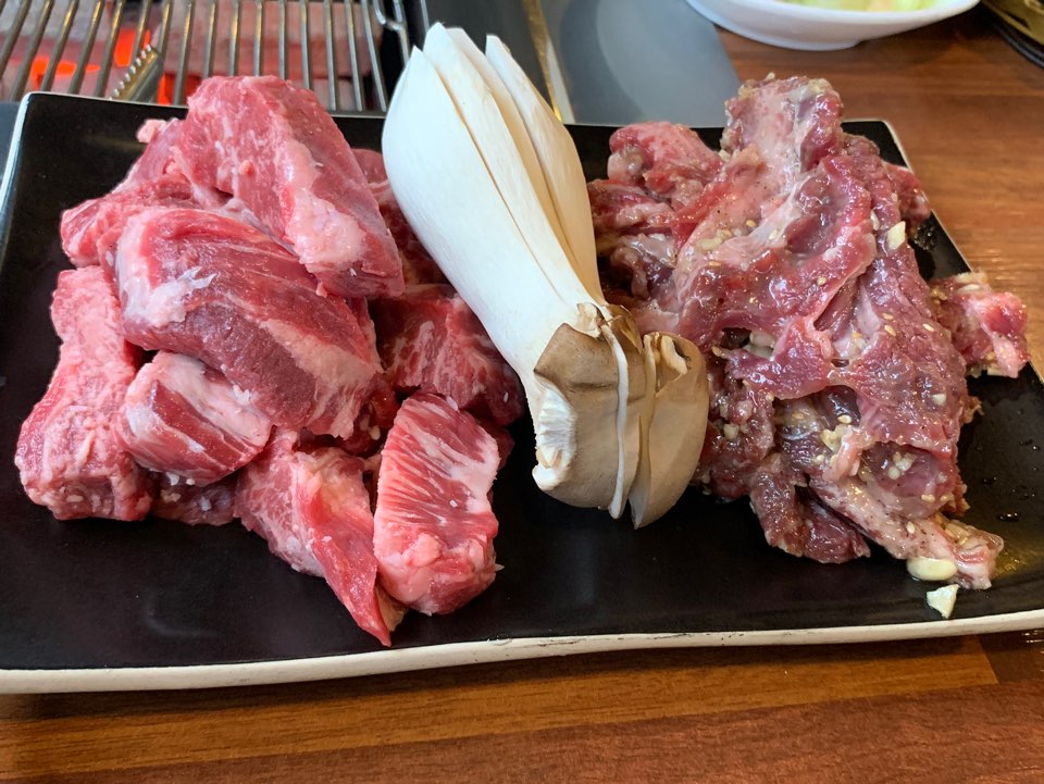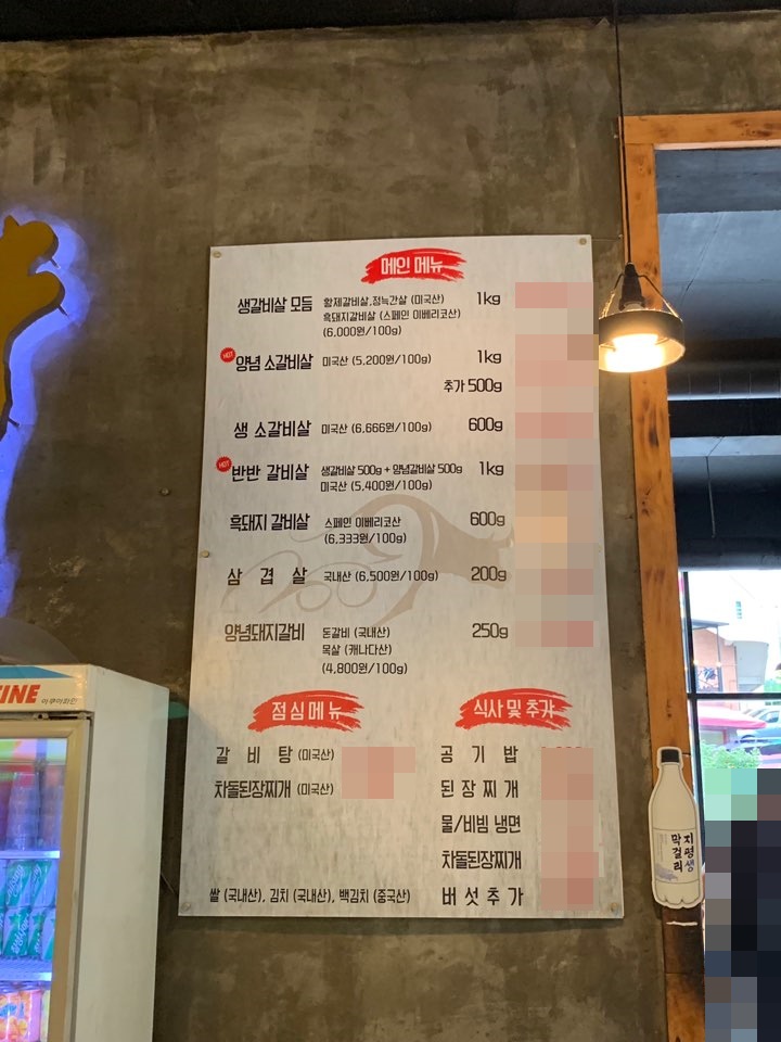 저희는 들어가서 자리에 앉아서 메뉴판을 보고 '반반 갈비살'을 주문했어요.