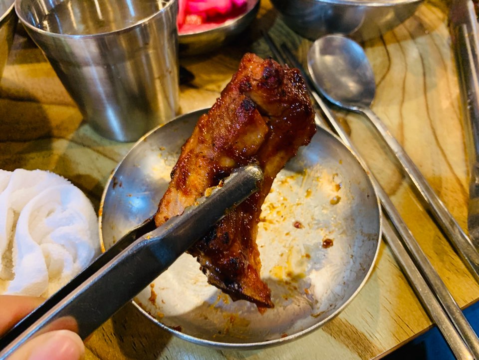 등갈비는 익혀서 나오기 때문에 불판 위에서 조금 더 덥혀 먹는다고 생각하시면 돼요.
