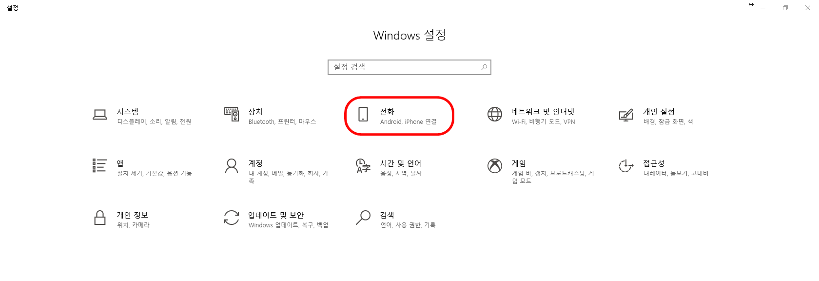 업데이트 후에 Windows 설정에 들어가면 전화 아이콘이 생긴 것을 알 수 있습니다.