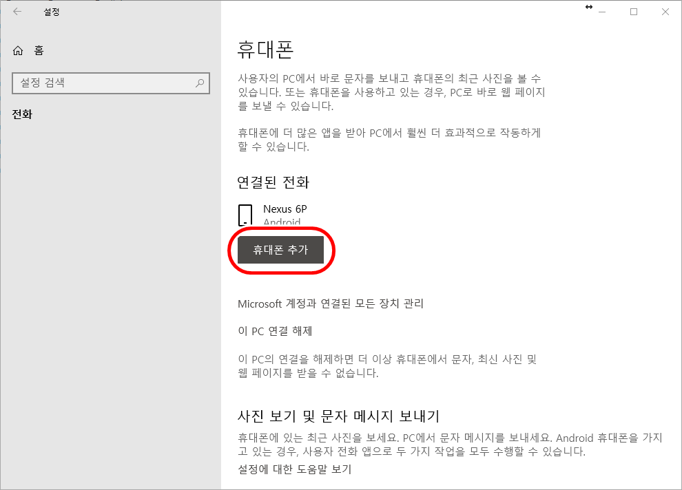 이 기능을 이용하면, Windows 10 PC에서 사진, 메시지, 알림을 받을 수 있습니다.