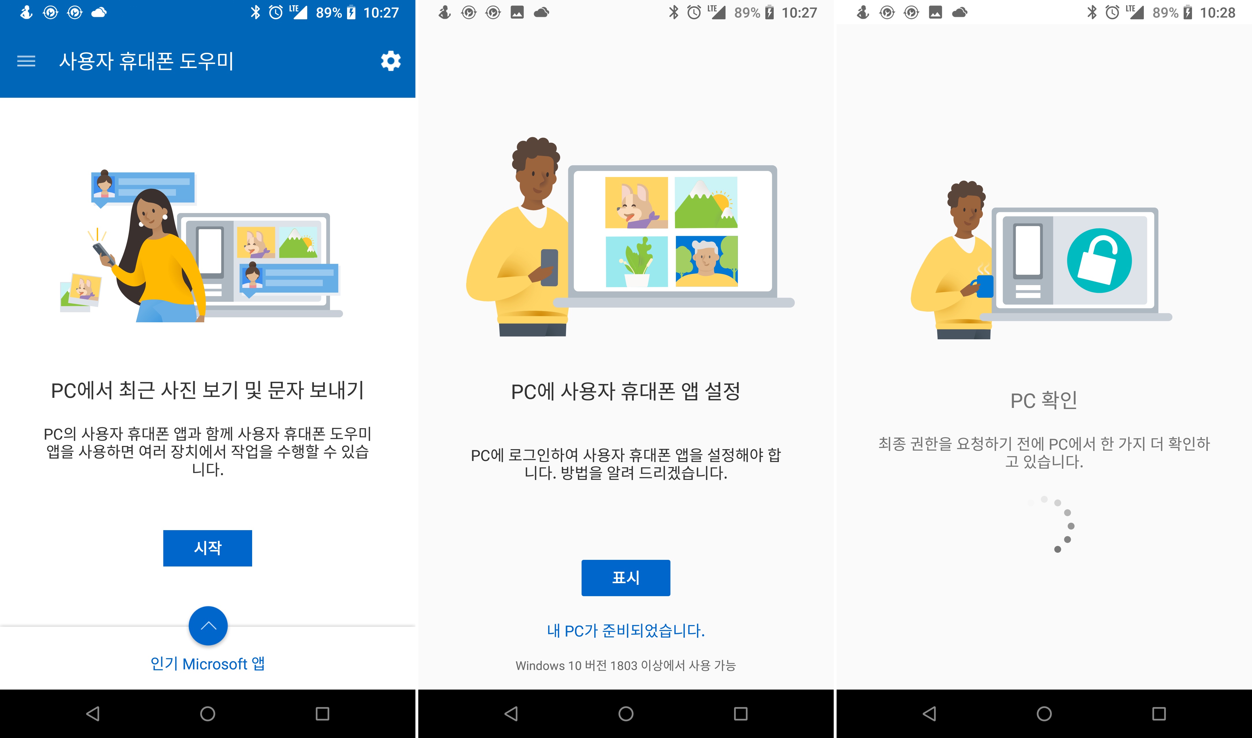 이렇게 하면, Windows 10 PC와 휴대폰을 연결하기가 완료가 됩니다.