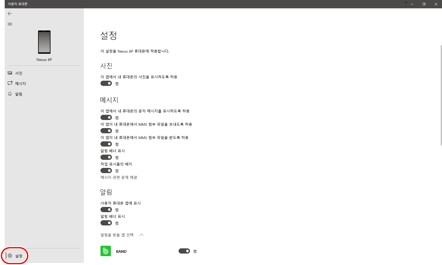 Windows 10 PC에서 휴대폰과 연결을 하였을 때,