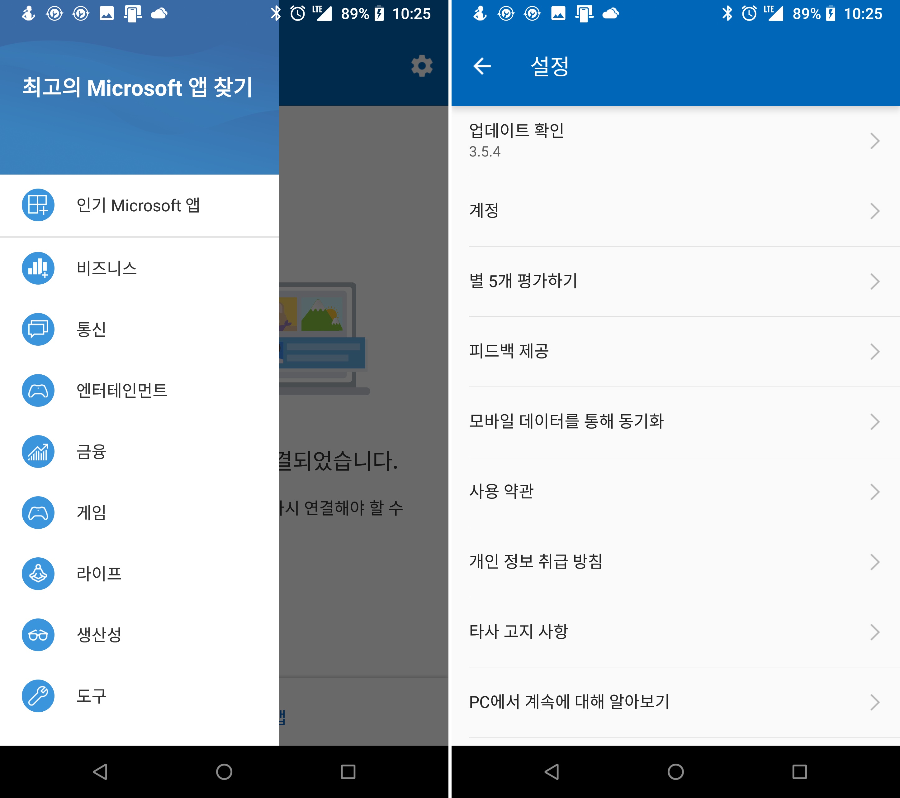 Android에서 사용할 수 있는 Microsoft APP에 대한 정보가 있고,