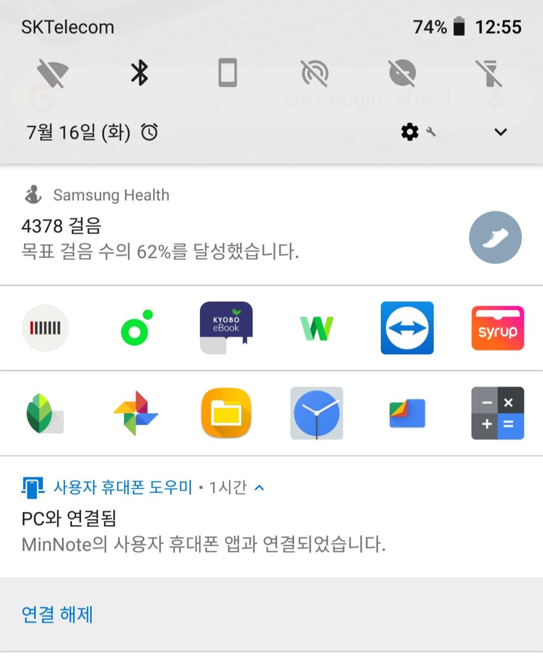 알림바에서 연결을 해제하고 싶으면 바로 해제가 가능합니다.