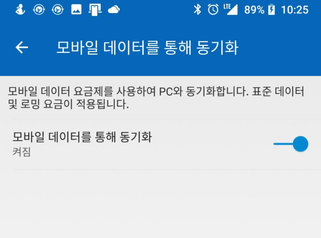 이곳에서 계정과 모바일 데이터를 통해 동기화 정도만 확인하면 될 거 같습니다.