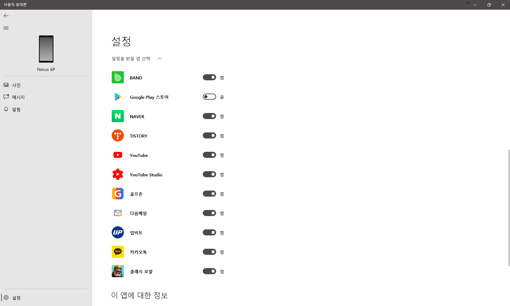 설정을 보면 APP에 대한 정보가 나와 있습니다.