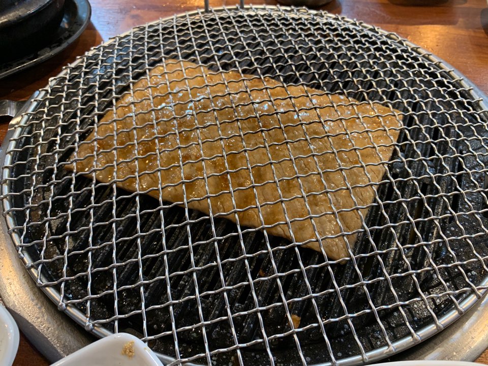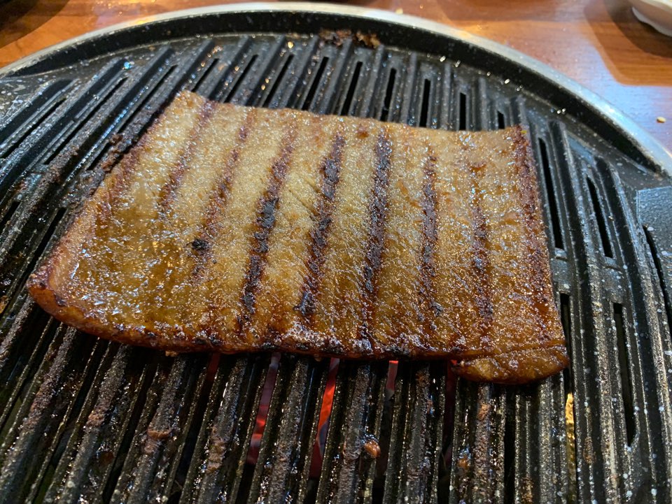 조금 굽고 뒤집으니 그릴자국이 아~~ 아름답게 쫙 펴졌어요. ㅎㅎㅎ