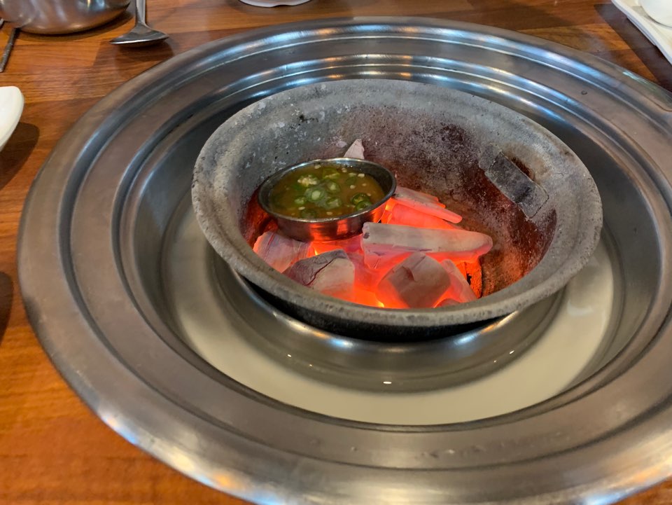불씨가 이쁜 숯이 나오자 젖갈을 넣어서 끓이고 있는 것이