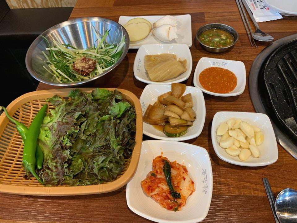 기본 반찬은 여느 고기집과 차이는 없는 듯해요. ㅎㅎ