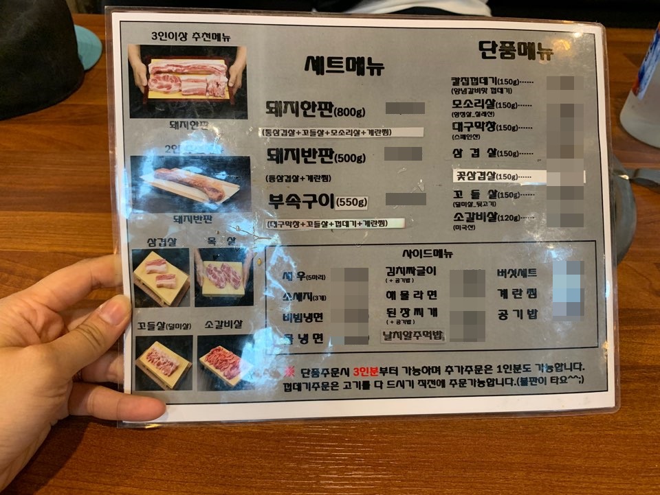 저희는 둘이 가서 가게 추천 메뉴중에 2인으로 표기된 돼지 반판을 주문하고,