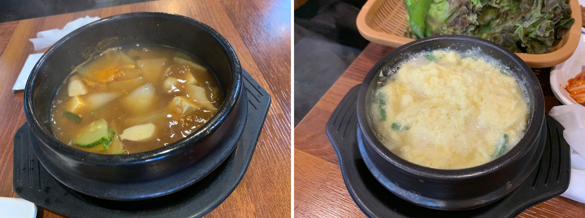 추가주문한 된장찌게와 세트메뉴에 포함된 계란찜!