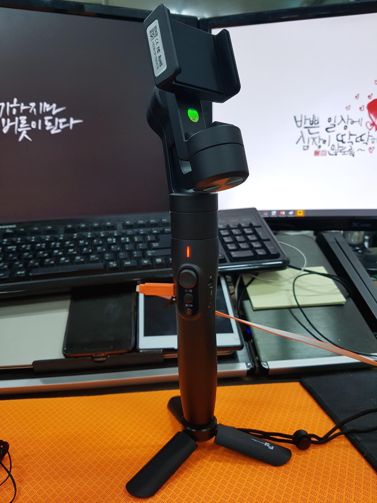 충전을 하면서 삼각대를 이용해서 세워 봤어요. ㅎㅎㅎ
