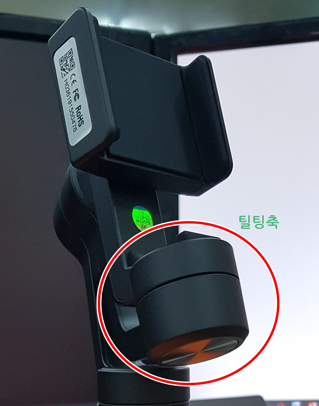 스마트폰을 거치하면 충전단자가 틸팅 축에 위치하게 되는데