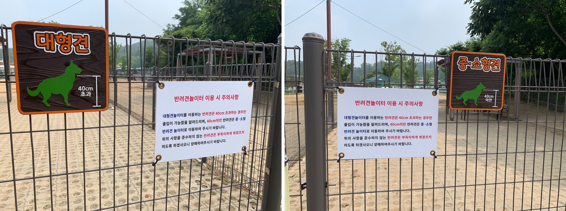 기입 다 하고, 입구로 들어가려고 보면 좌측은 대형견이고 우측은 중·소형견으로 되어 있어요.