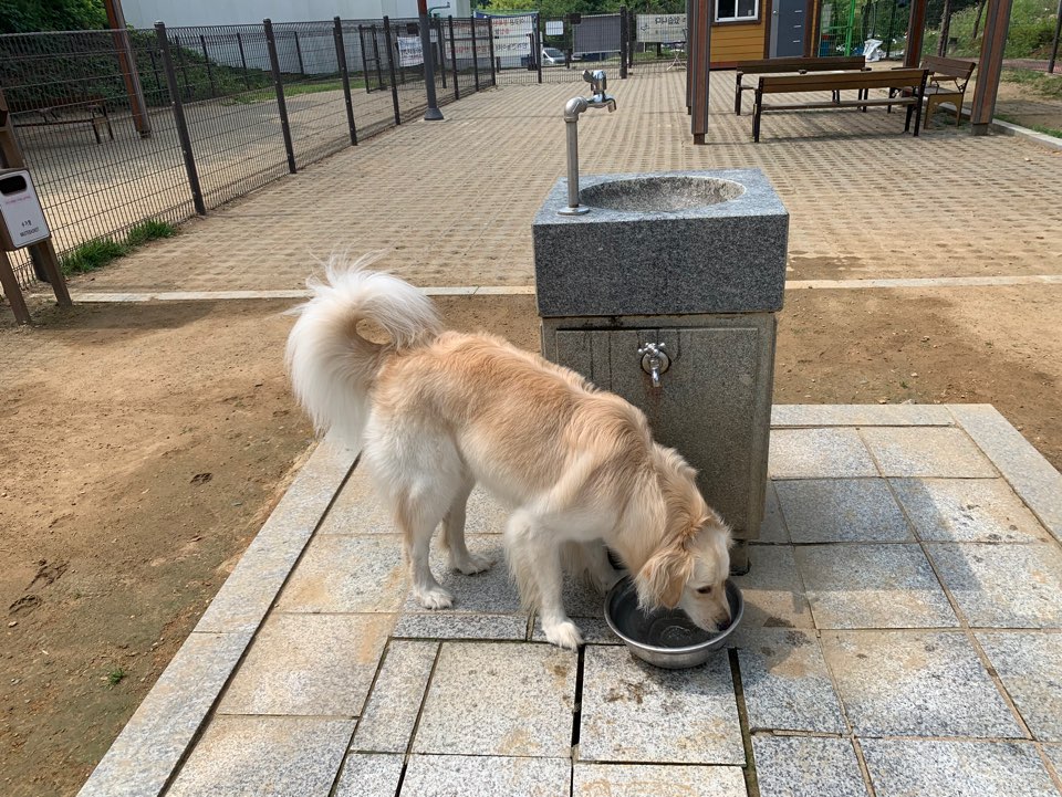 열심히 강아지들이 놀다가 목을 축일수 있도록 수도도 설치가 되어 있어요.