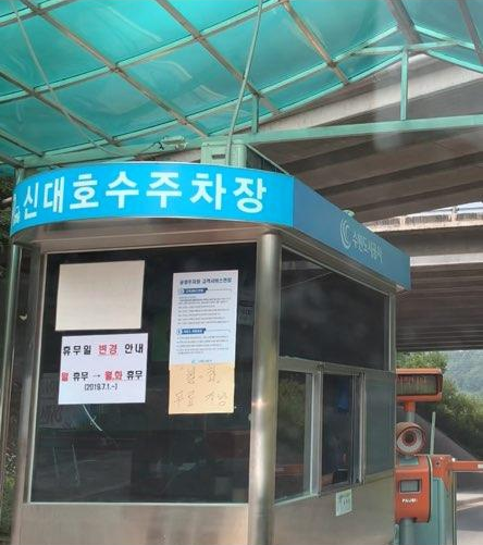 신대호수 주차장에 차를 주차할 수 있어요.
