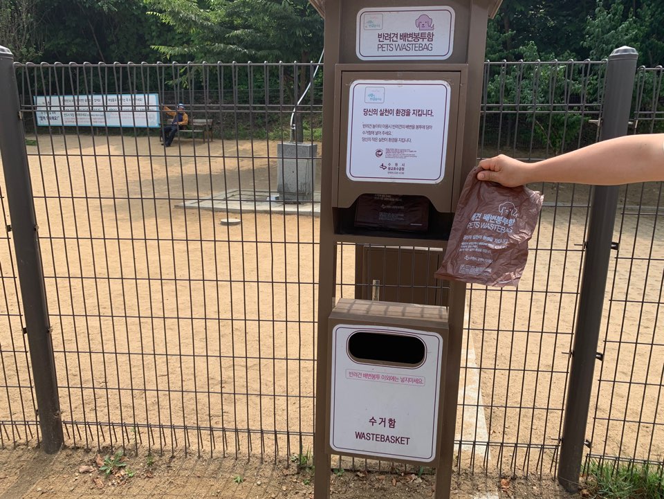반려견 필수 사항인 배변 봉투를 수거하는 수거함도 있어요.
