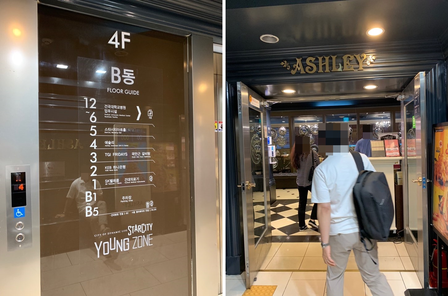 애슐리 W는 스타시티의 B동 4층에 위치하고 있었어요.