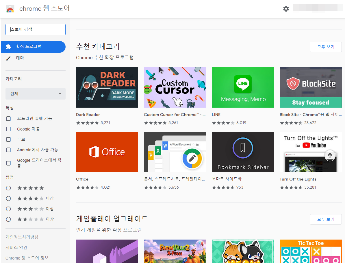 Link : 구글 크롬 웹스토어(https://chrome.google.com/webstore)
