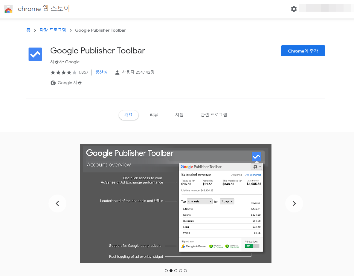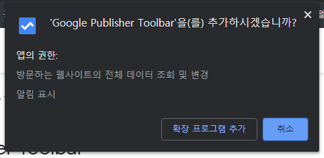 구글 퍼블리셔 툴바 프로그램은 크롬 브라우져에서 제공하는 확장 프로그램이에요.