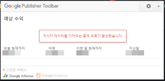 구글 퍼블리셔 툴바에서 '게시자 데이터를 가져오는 중에 오류가 발생했습니다' 문제가 발생했다면