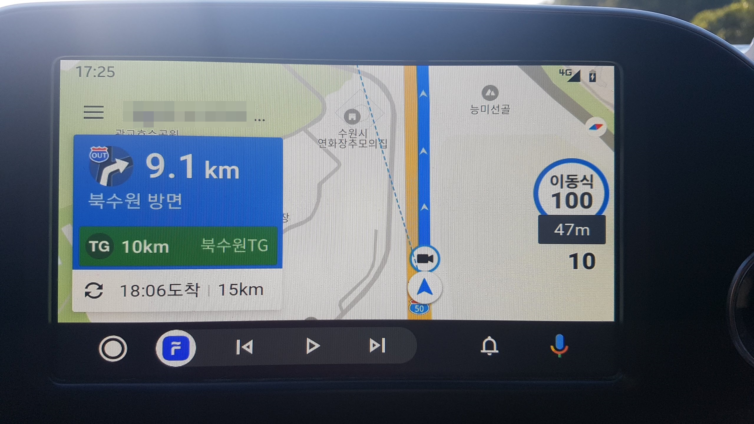 이번 구글 안드로이드 오토 UI 업데이트에서는 다른 앱화면으로 이동을 해도 하단에 내비게이션 정보가 나오게 되었어요.