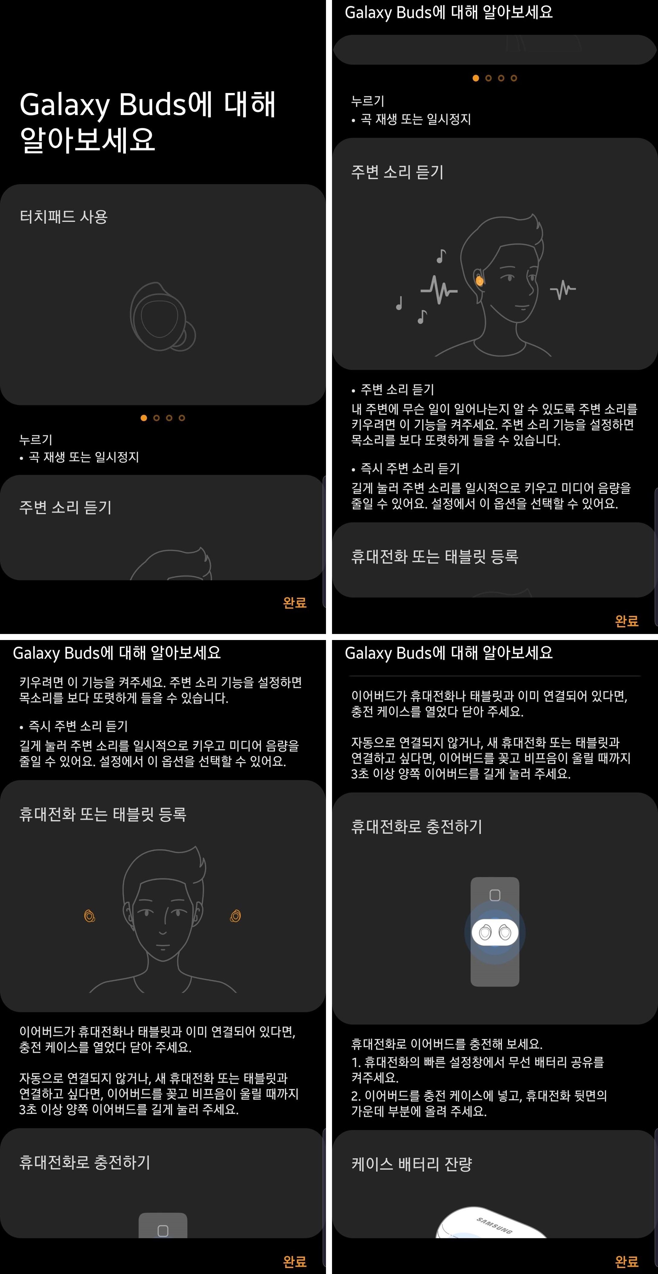 간편한 페어링으로 연결된 갤럭시 버즈를 이제는 잘 활용해 봐야겠습니다.