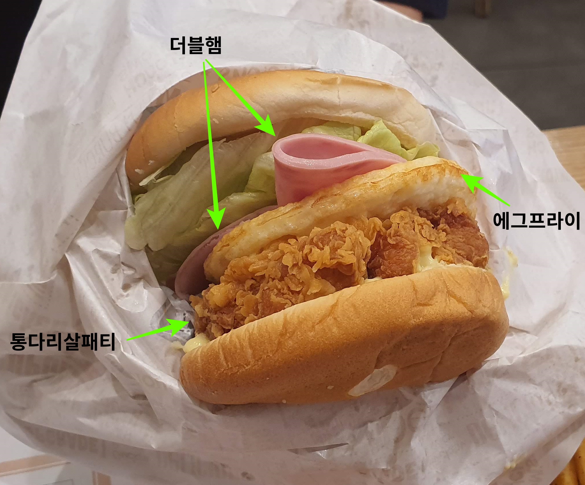 통다리살, 통가슴살 패티라서 더 든든하고 맛있는 거 같아요.