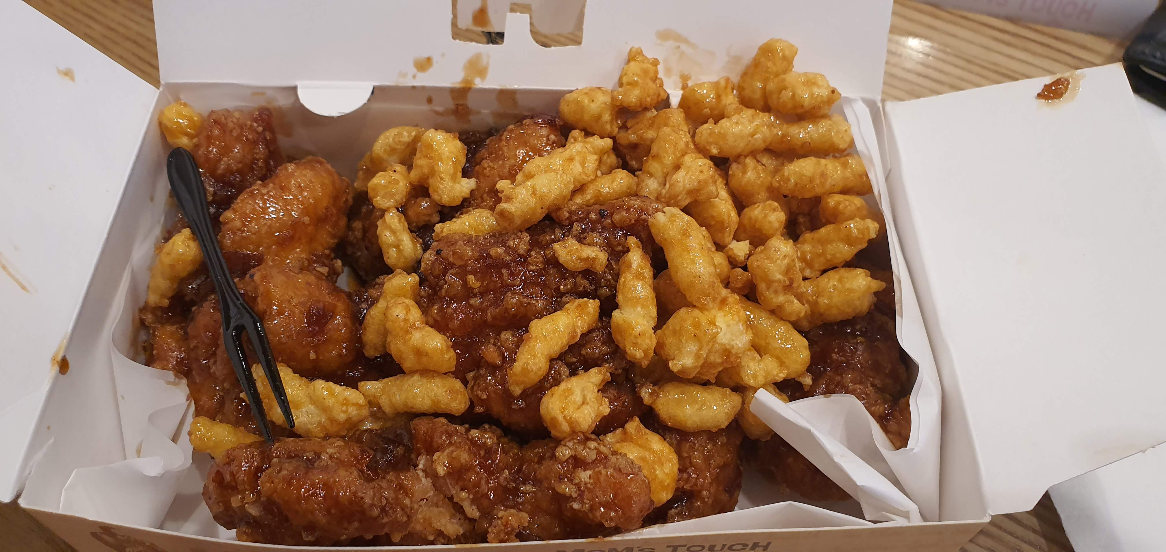 아무래도 매콤소이팝 강정은 크기가 커서 한입 먹고, 또 먹고 해서 그런 거 같아요.