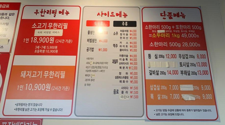 소고기 무한리필 뿐만 아니라, 돼지고기도 무한리필로 있어요.