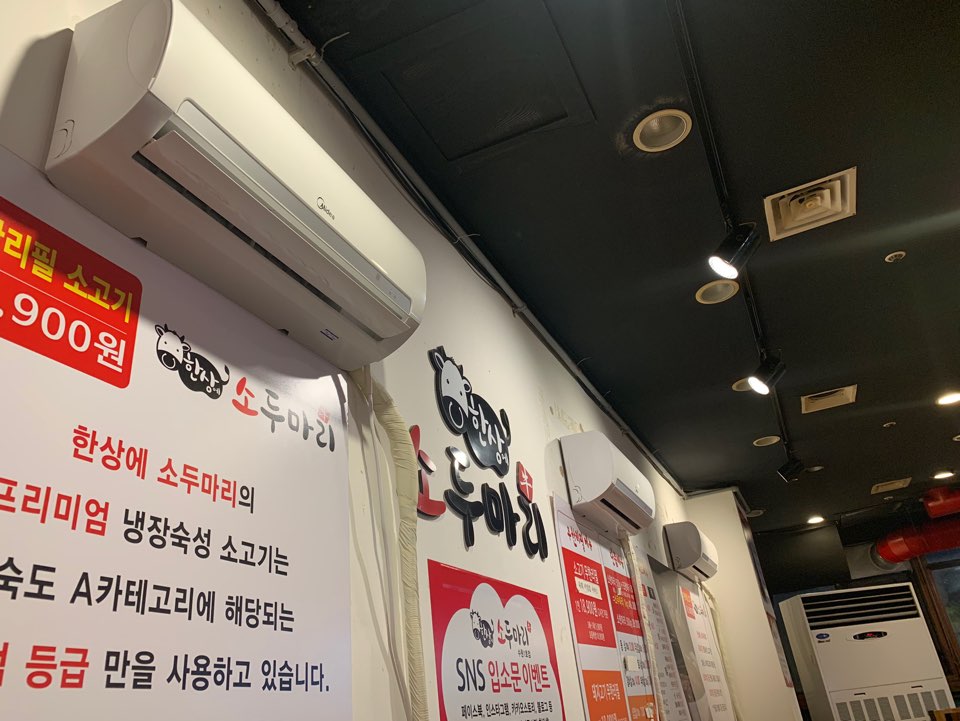 그래도 연기 때문인지, 대형 에어콘에어컨 외에도 벽면에 에어컨이 달려 있었어요.