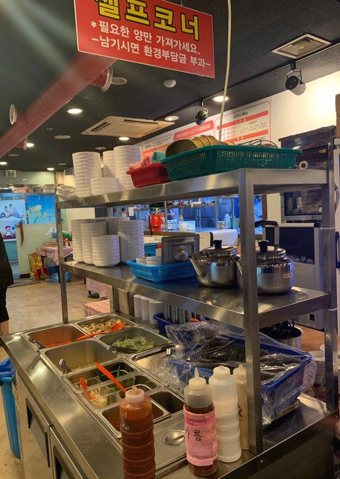 계속 끓여서 육수가 없어지면 셀프코너의 육수를 가져다 부으면 돼요.