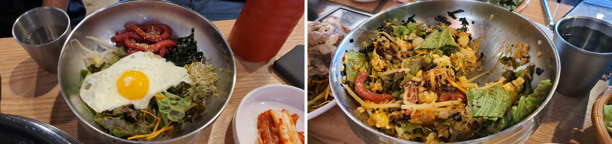 저희는 다섯 명이서 갔는데요. 한 테이블에 하나로 서비스 육회비빔밥이 나왔어요. ㅎㅎ