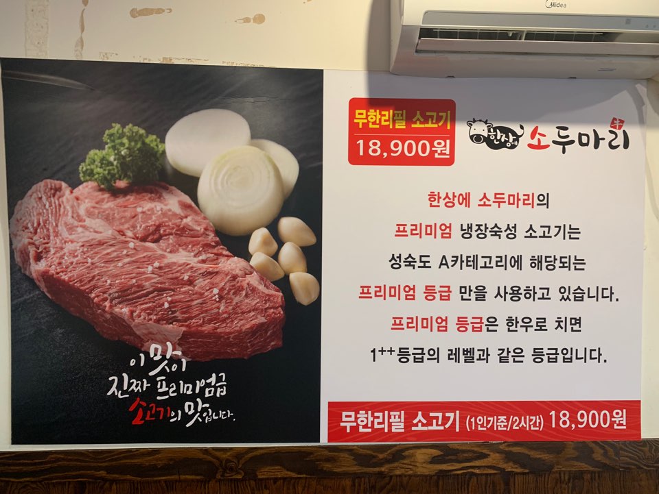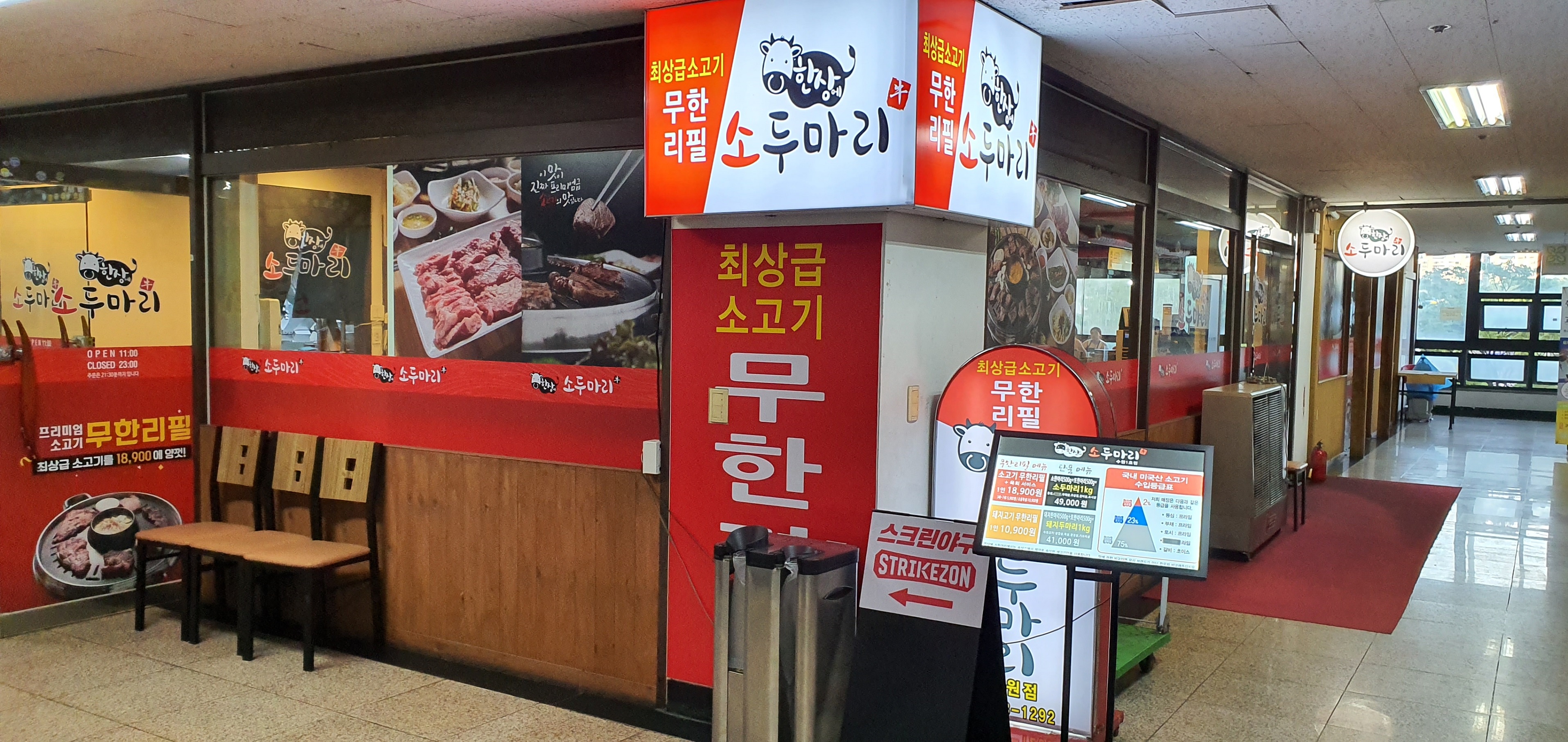 한상에 소 두마리는 소고기 무한리필로 체인점이에요.