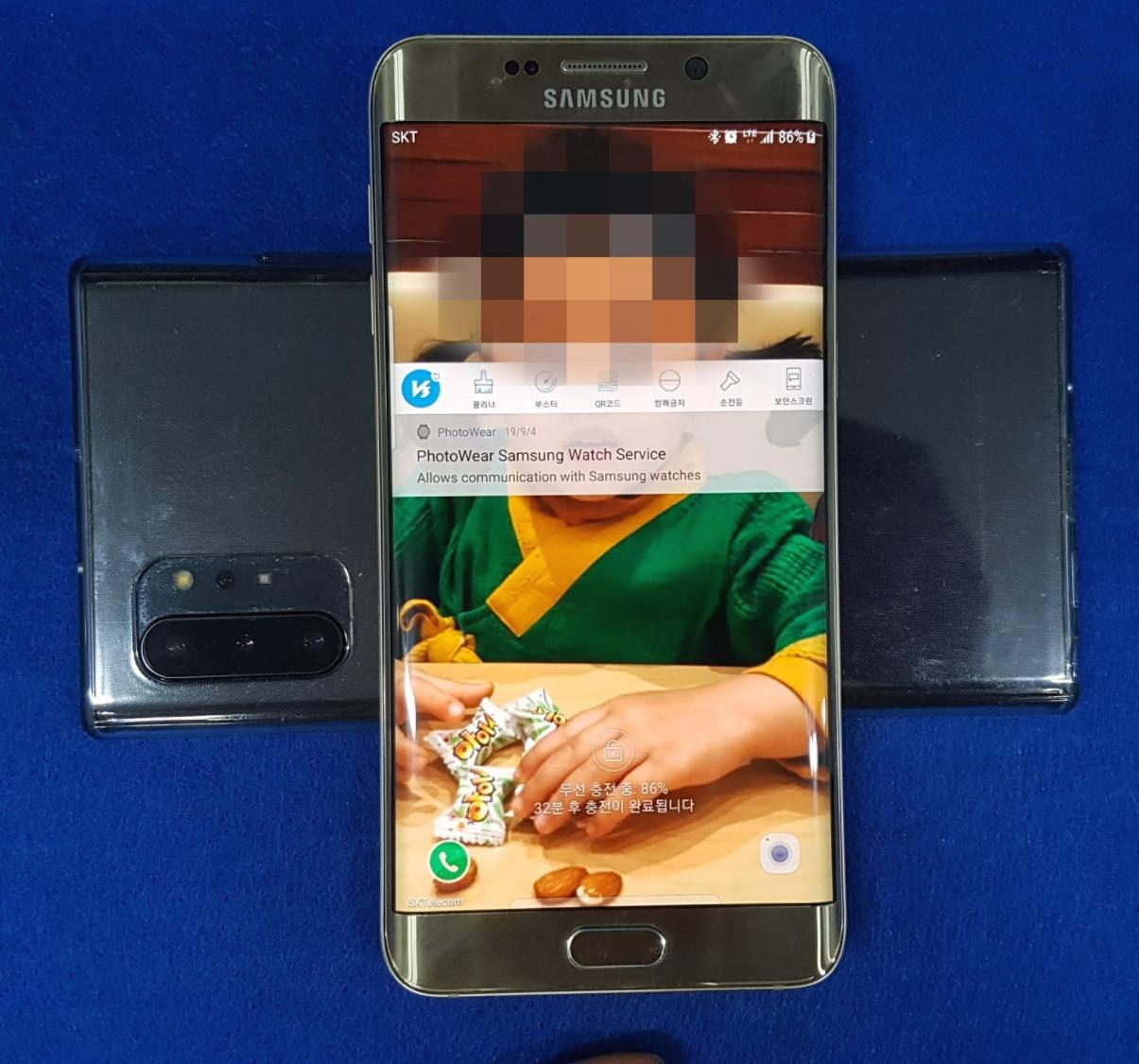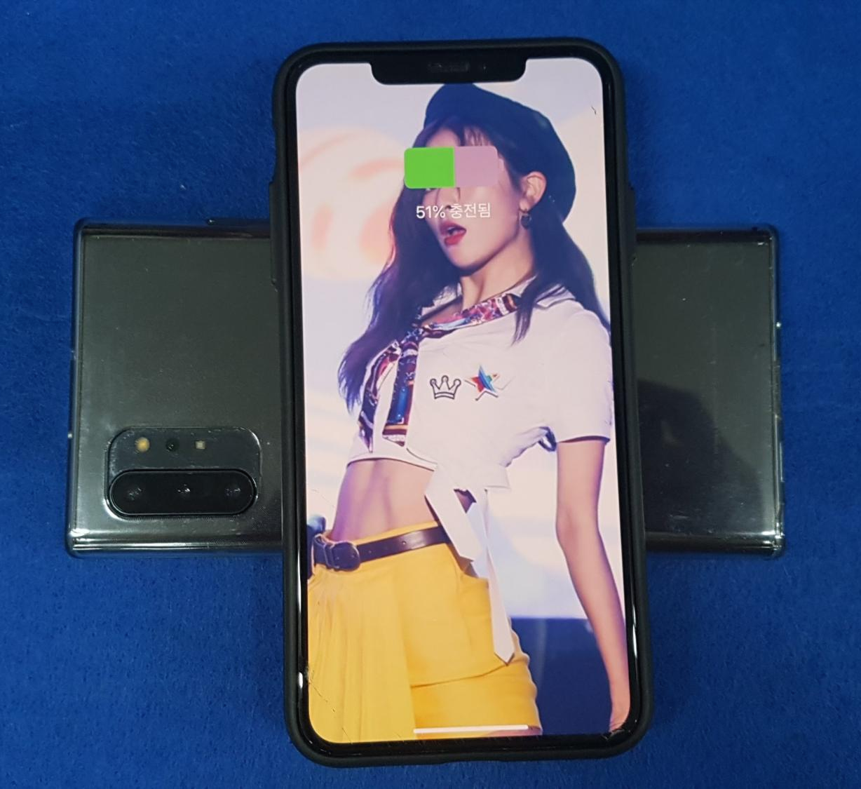 3. 위 동영상에서 알 수 있듯이, 갤럭시노트10 플러스의 뒷면과 충전을 할 디바이스의 뒷면을 서로 맞대 줍니다.