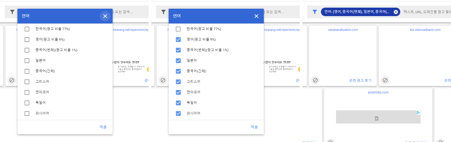 필터링을 통해서 나오는 광고 중에 한국어 광고도 있을 때가 있습니다.
